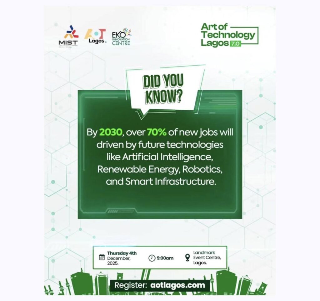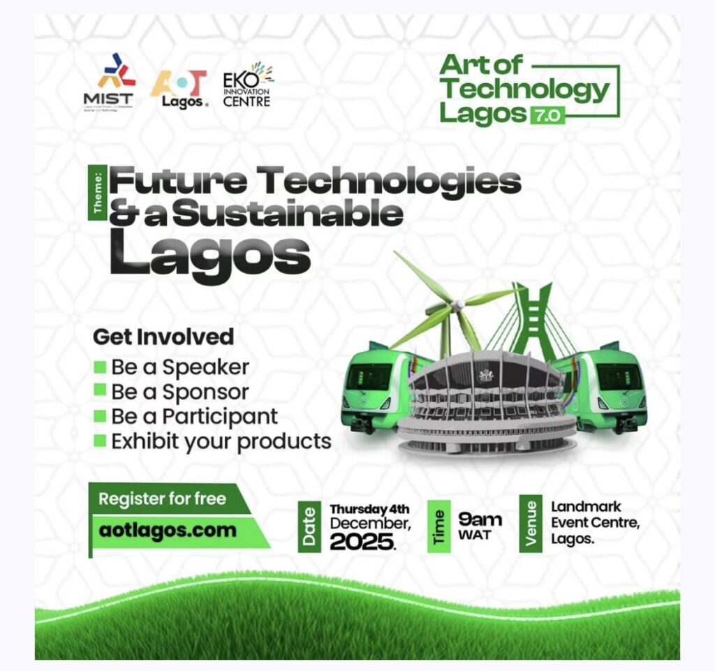 Lagos is gearing up for one of the biggest tech gatherings of the year. Art of Technology Lagos (AOT Lagos) 7.0 promises to bring together policymakers, innovators, startups, tech enthusiasts, and global experts under one roof to reimagine what a smart, sustainable Lagos can and should be. If you’re interested in AI, blockchain, smart infrastructure, IoT, clean energy, or tech policy, this is a must-attend event.
